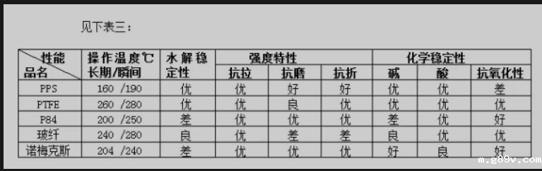 根据表三,就应对化学腐蚀影响,电厂常用的相关滤料材质,PTFE 优于PPS和P84。