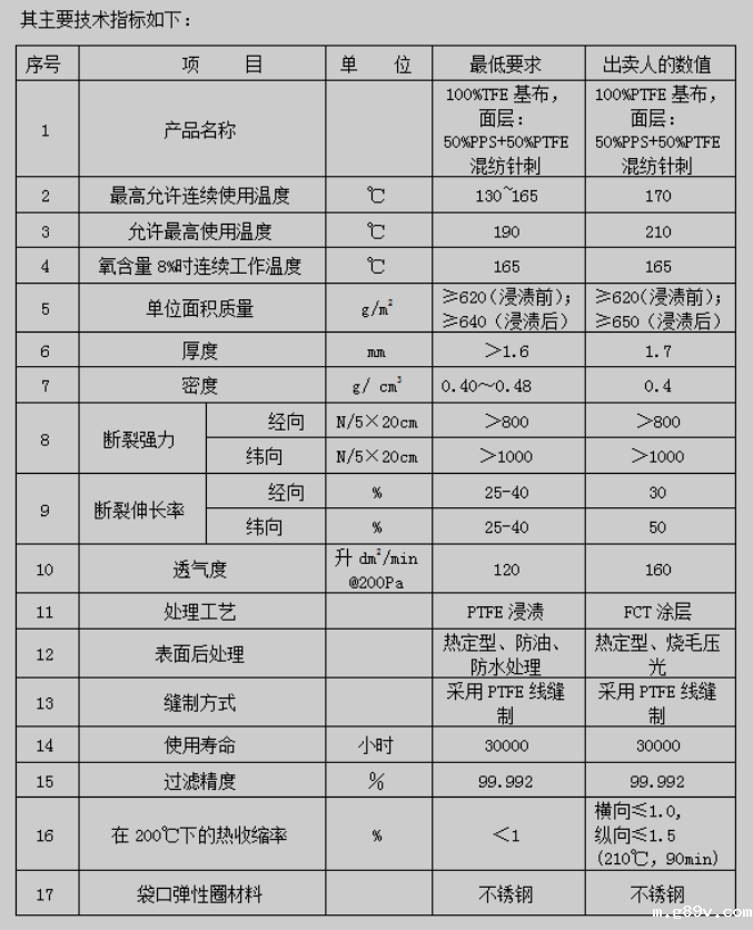 1.2 #3炉袋式除尘器滤袋设计材质及参数
