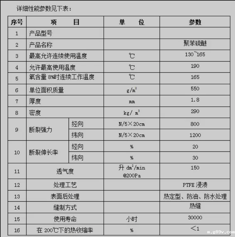 滤袋材质:PPS(PTFE基布)